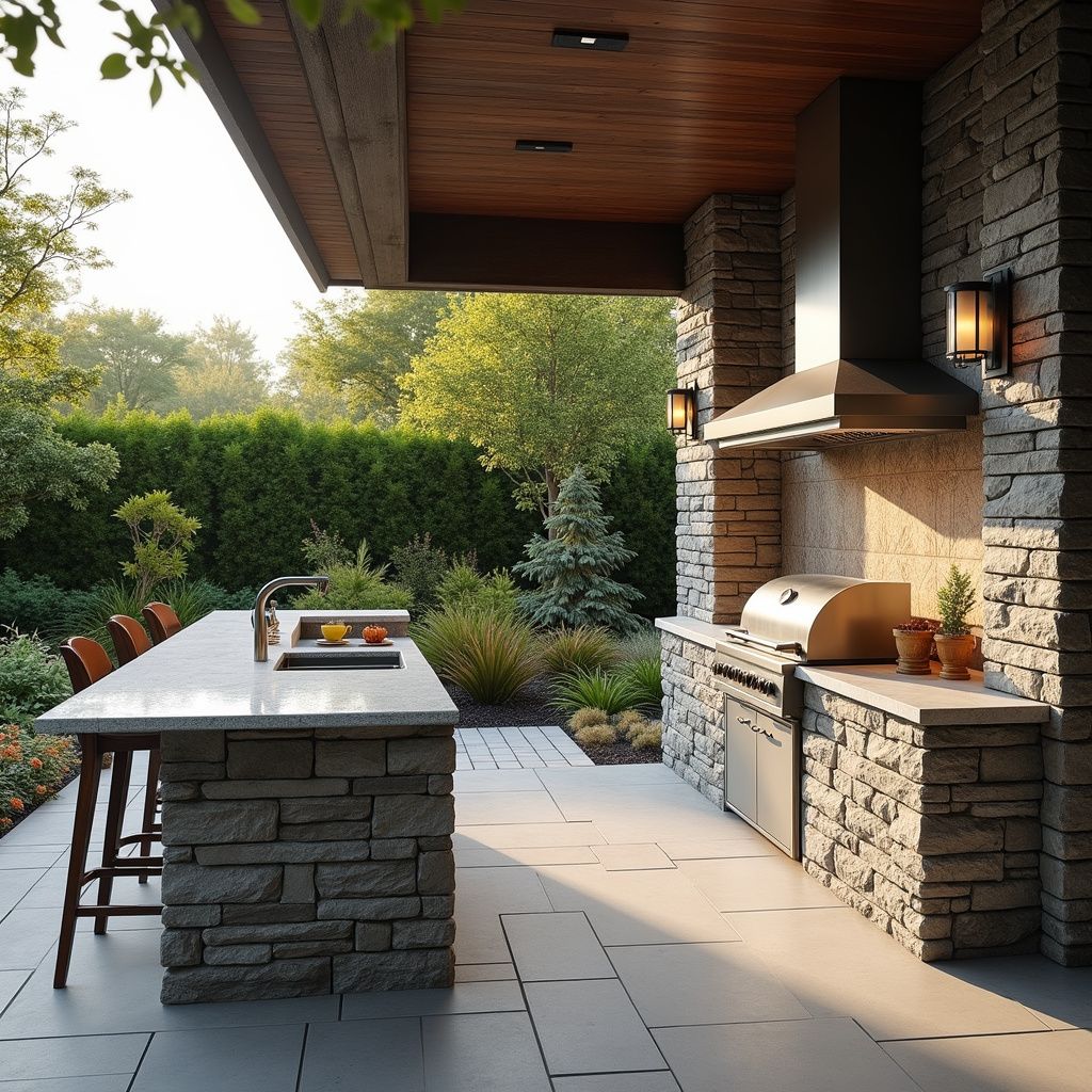 Custom stone features like outdoor kitchens and garden edging add functional luxury to your outdoor spaces. We ensure precision fitting and seamless integration with your landscape.